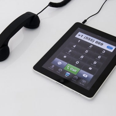 Turns your tablet computer into a telephone via Skype or VOIP application